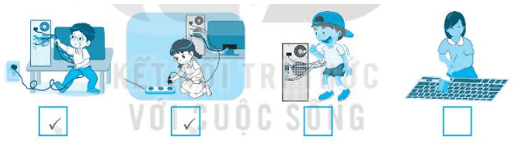 Vở bài tập Tin học lớp 3 trang 14 Câu 9: Đánh dấu ✔ vào những hành động không được làm để đảm bảo an toàn về điện.