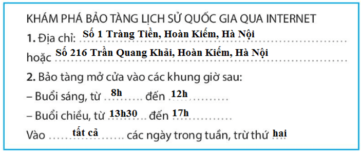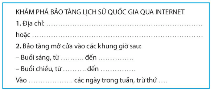Vở bài tập Tin học lớp 3 trang 25, 26 Câu 4: Hình dưới đây mô phỏng trang tin trực tuyến của Bảo tàng Lịch sử Quốc gia tại địa chỉ http://baotanglichsu.vn. Em hãy quan sát các thông tin trên trang tin này để hoàn thiện phiếu trả lời.
