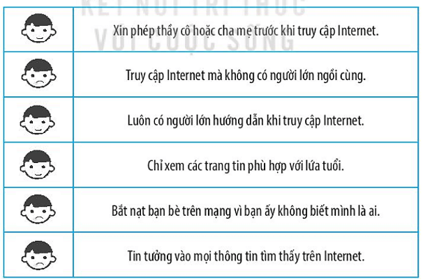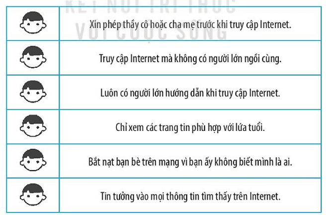 vào việc không nên làm khi truy cập Internet.