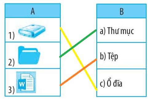 Vở bài tập Tin học lớp 3 trang 34 Câu 6: Hãy nối mỗi biểu tượng ở cột A với một mô tả ở cột B sao cho đúng.