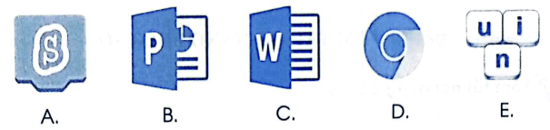 D là phần mềm duyệt web Google Chrome giúp em xem thông tin trên các trang web. A là phần mềm lập trình trực quan. B là phần mềm trình chiếu. C là phần mềm soạn thảo văn bản. E là phần mềm gõ tiếng Việt có dấu.