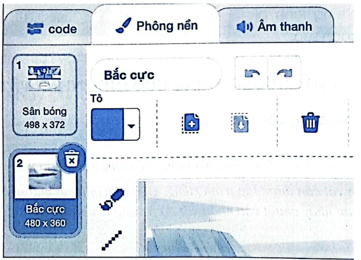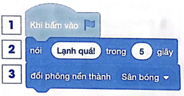 - Lệnh 3 bị sai tên phông nền, phải đổi “Sân bóng” thành “Bắc cực”.