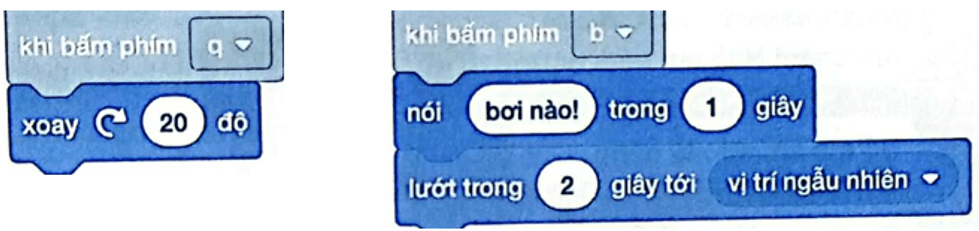 - Hiển thị bóng nói “bơi nào!" trong 1 giây.