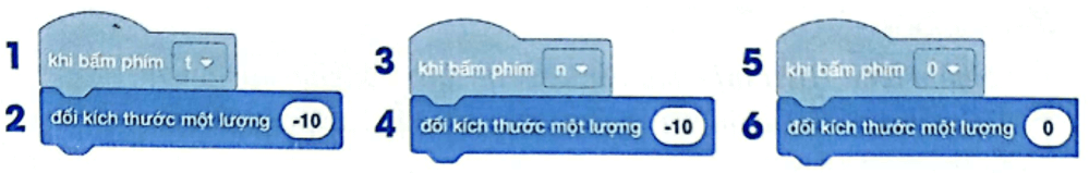 Để khi gõ phím t thì nhân vật sẽ to lên nên lệnh 2 cần thay -10 thành 10
