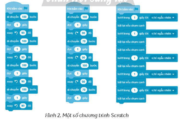 Câu 2 trang 55 Vở bài tập Tin học lớp 4: Chọn và sắp xếp các việc dưới đây theo thứ tự để tạo chương trình điều khiển nhân vật cô bọ cánh cứng di chuyển theo các cạnh của hình vuông (Hình 1).