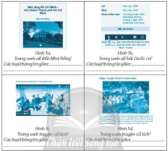 Câu 3 trang 11 Vở bài tập Tin học lớp 4: Điền vào chỗ chấm các loại thông tin có trong mỗi hình dưới đây.