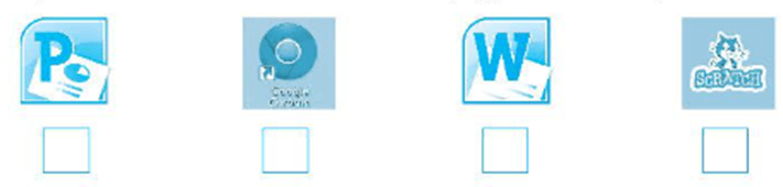 Câu 1 trang 41 Vở bài tập Tin học lớp 4: Em hãy đánh dấu √ vào ô bên dưới biểu tượng phần mềm soạn thảo văn bản.