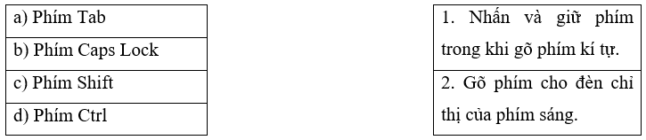 Câu 2 trang 50 Vở bài tập Tin học lớp 4: Nối tên phím với cách sử dụng để gõ được chữ hoa khi soạn thảo văn bản.