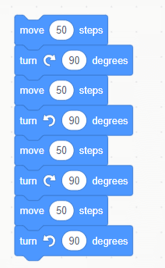 Câu 9 trang 56 Vở bài tập Tin học lớp 4: Bạn Minh muốn nhân vật đi theo hình vuông và viết chương trình như hình dưới. Theo em, chương trình của bạn Minh đã đúng chưa? Nếu chưa em hãy chính lại cho đúng.