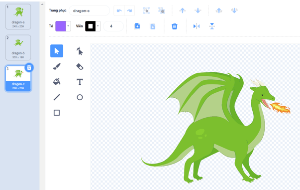 a) Thêm nhân vật Dragon như hình sau có 3 bộ trang phục sau