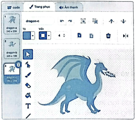 a) Thêm nhân vật Dragon như hình sau và xóa trang phục dragon-c.