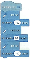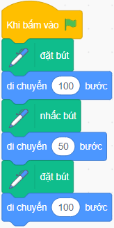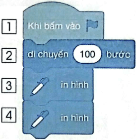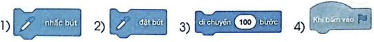 Câu hỏi và bài tập 2 trang 37 VBT Tin học lớp 5: Em hãy sắp xếp thứ tự các lệnh sau đây để lập trình thực hiện: vẽ một đoạn thẳng có độ dài là 100 bước.