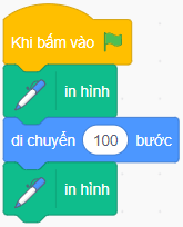 , chương trình sẽ in 2 hình ảnh nhân vật cách nhau một đoạn có độ dài 100 bước. Nhưng chương trình của Hưng không thực hiện đúng yêu cầu. Em hãy chỉ cho Hưng những lệnh bị sai thứ tự và cách sửa.