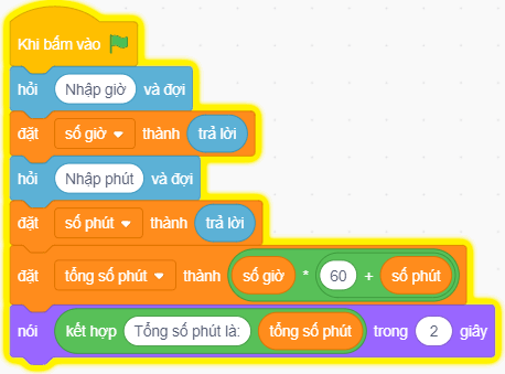 Tổng số phút tương ứng bằng số giờ nhập vào nhân với 60 và cộng với số phú được nhập vào