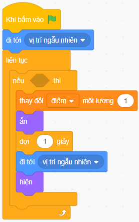 Lưu ý: Cần có lệnh đợi 1 giây nếu không sẽ bị trừ điểm liên tục.