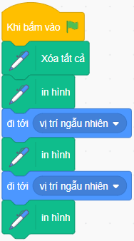 Gợi ý: Dùng lệnh đi tới vị trí ngẫu nhiên – để đặt nhân vật ở vị trí ngẫu nhiên.