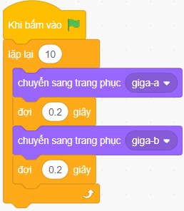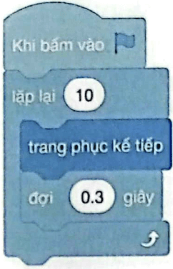 Nhân vật thay đổi trang phục 10 lần do có khối lệnh lặp lại 10 lần.