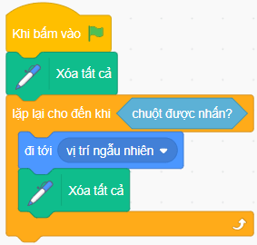 2) Lệnh Xóa tất cả ở sai vị trí, cần để lệnh này đứng ngay sau lệnh “Khi bấm vào”.