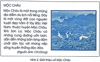 Em hãy tạo tệp văn bản có nội dung như Hình 3, trong đó ảnh được chèn vào văn bản được lấy từ máy tính. Có thể thay đổi nội dung và chọn ảnh khác phù hợp. Cần thay đổi kích thước, tạo đường viền và bố trí ảnh một cách hợp lí trong văn bản. Lưu tệp với tên Mộc Châu.