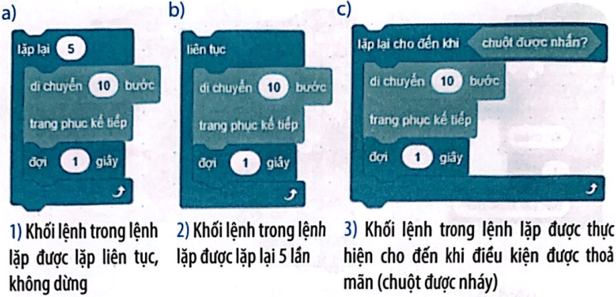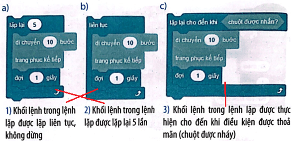 b) Trong chương trình có cấu trúc lặp, lệnh hoặc khối lệnh được thực hiện lặp lại.