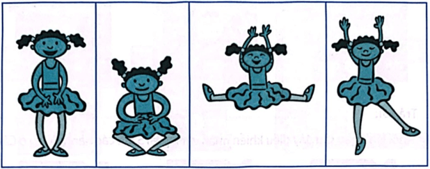 Câu 10 trang 57 Vở bài tập Tin học lớp 5: Trong Scratch có một nhân vật dễ thương tên là Ballerina. Các động tác Ballerina đang múa được vẽ thành bốn “trang phục” của nhân vật như hình dưới đây: