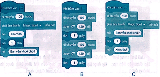 Câu 9 trang 56 Vở bài tập Tin học lớp 5: Em hãy chọn chương trình đúng để điều khiển nhân vật chim bồ câu lặp lại liên tục hành động vừa bay vừa vỗ cánh.