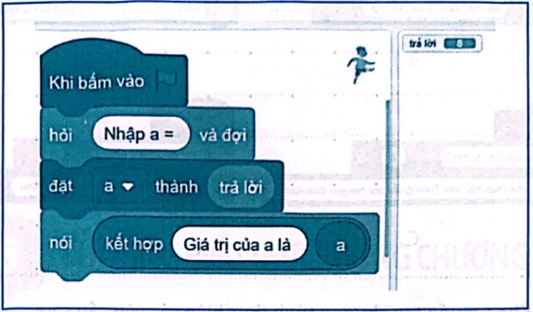 Giá trị của biến a được đặt theo giá trị của biến trả lời là 8 nên thông báo của chương trình hiện ra là Giá trị của a là 8.