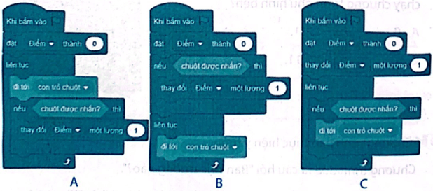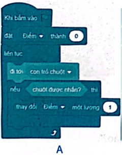 a) Chương trình A thực hiện ý tưởng của bạn Khoa. Sử dụng khối lệnh lặp liên tục và cấu trúc rẽ nhánh kiểm tra điều kiện xem chuột được nhấn không.