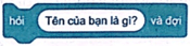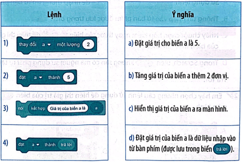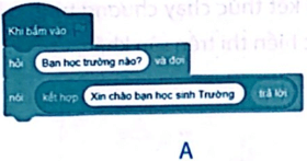 Lệnh “nói” A và B có thể được dùng để hiển thị giá trị của biến “trả lời” bằng cách chèn giá trị biến vào trong 2 lệnh này.