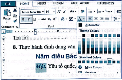 D. Em có thể định dạng văn bản tiếng Việt với màu chữ bất kì (trong bảng chọn).
