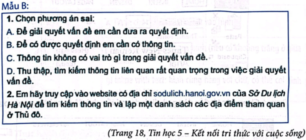 Câu 1 trang 24 Vở bài tập Tin học lớp 5: Chọn phương án đúng nhất.