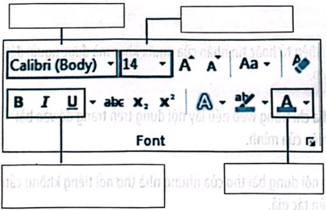 Câu 2 trang 24 Vở bài tập Tin học lớp 5: Điền từ thích hợp vào ô trống để mô tả các công cụ định dạng kí tự trong hình sau: