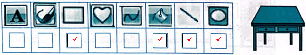 Câu 10 trang 36 Vở bài tập Tin học lớp 5: Để vẽ cái bàn như hình sau, em cần sử dụng những công cụ nào? Đánh dấu ✓ vào ô trống dưới phương án đúng.