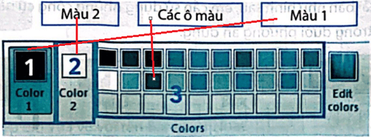 Câu 2 trang 34 Vở bài tập Tin học lớp 5: Hãy điền các cụm từ vẽ hình, chỉnh sửa, công cụ, chọn, tô màu vào chỗ chấm quần cho đúng