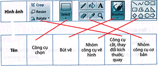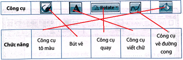 Câu 8 trang 36 Vở bài tập Tin học lớp 5: Em hãy nối mỗi công cụ với chức năng cho đúng.