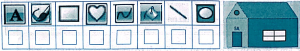 Câu 9 trang 36 Vở bài tập Tin học lớp 5: Để vẽ ngôi nhà như hình sau, em cần sử dụng những công cụ nào? Đánh dấu ✓ vào ô trống dưới phương án đúng.