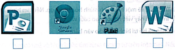 Câu 3 trang 34 Vở bài tập Tin học lớp 5: Đánh dấu ✓ vào ô trống bên dưới biểu tượng phần mềm đồ hoạ Microsoft Paint.