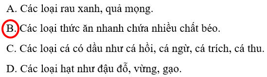B. Các loại thức ăn nhanh chứa nhiều chất béo.