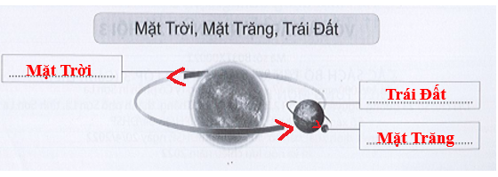 Vở bài tập Tự nhiên xã hội lớp 3 trang 75 bài 8: Chọn từ ngữ cho sẵn để điền vào chỗ ……. Đánh dấu mũi tên chỉ chiều chuyển động của Mặt Trăng quanh Trái Đất, Trái Đất quanh Mặt Trời vào sơ đồ sau cho phù hợp.