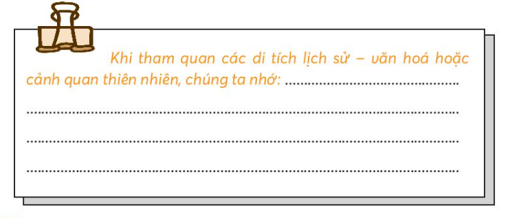 Vở bài tập Tự nhiên xã hội lớp 3 trang 31 bài 3: Viết những điều em cần lưu ý khi đến tham quan các khu di tích lịch sử - văn hoá hoặc cảnh quan thiên nhiên.