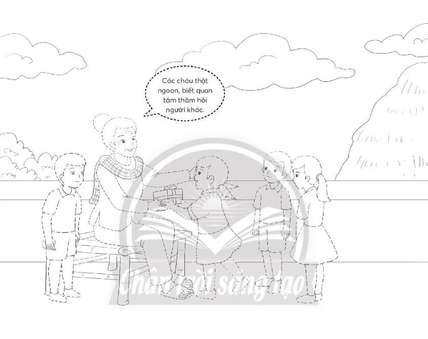 Vở bài tập Tự nhiên xã hội lớp 3 trang 21 bài 5: Nối các nét đứt với nhau và tô màu để hoàn thành bức tranh sau. Viết vào chỗ (…) ý nghĩa của bức tranh.