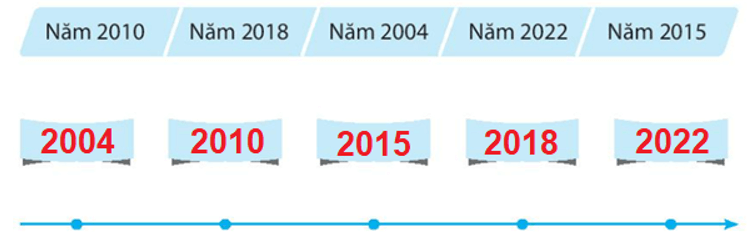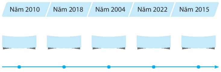 Vở bài tập Tự nhiên xã hội lớp 3 trang 8 bài 4: Viết các mốc thời gian sau đây vào các ô trống trên đường thời gian theo thứ tự đúng.
