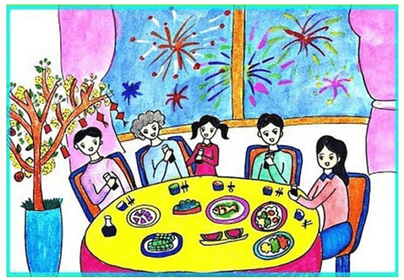 (Cả nhà em cùng đón giao thừa đêm 30 Tết)