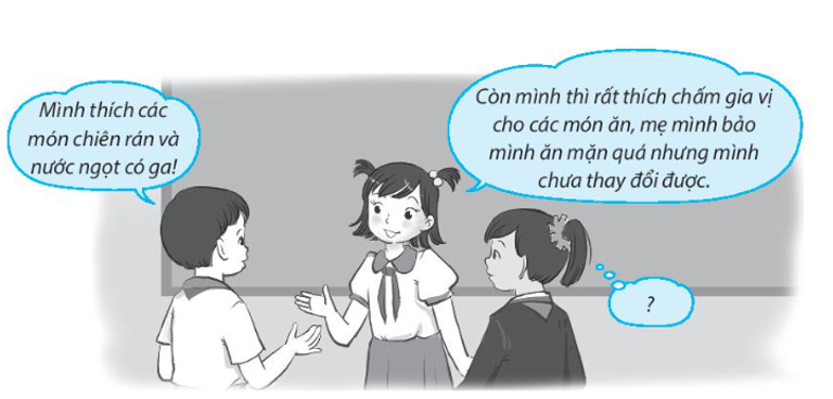 Em sẽ nói với Nam và Hoa rằng: đồ ăn nhiều dầu mỡ, nước ngọt và ăn mặn đều có hại cho hệ tuần hoàn, tim và mạch máu.
