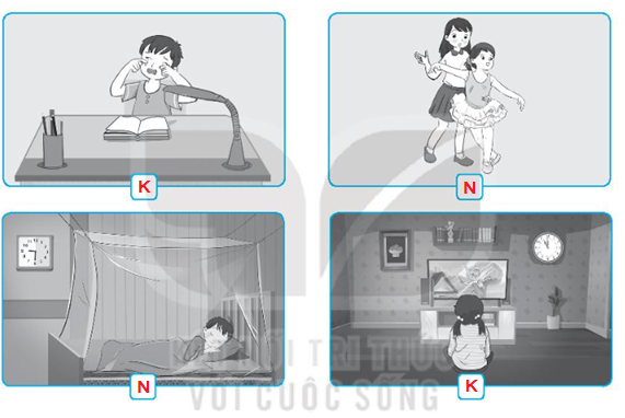 Vở bài tập Tự nhiên xã hội lớp 3 trang 59 bài 1: Hãy viết chữ N vào những việc nên làm và chữ K vào những việc không nên làm trong các hình dưới đây.