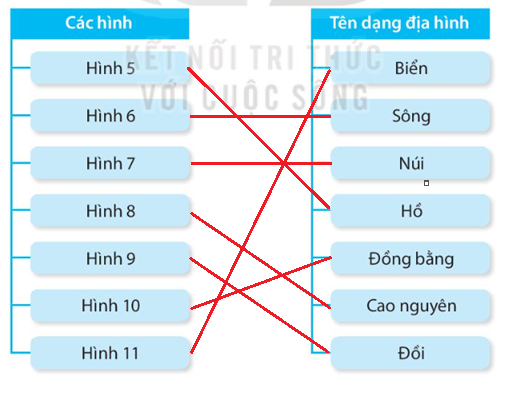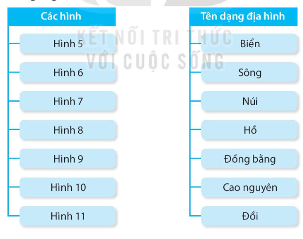 Vở bài tập Tự nhiên xã hội lớp 3 trang 71 bài 5: Ghép các hình từ 5 đến 11 (trang 114, 115 SGK) với dạng địa hình tương ứng.