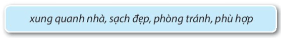 Chúng ta cần làm những việc (1) phù hợp để giữ vệ sinh (2) xung quanh nhà. Tạo môi trường sống (3) sạch đẹp bảo vệ sức khoẻ, góp phần (4) phòng tránh dịch bệnh.