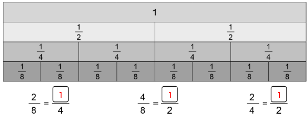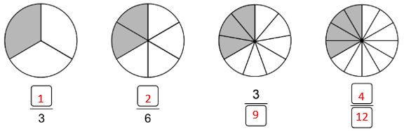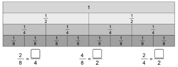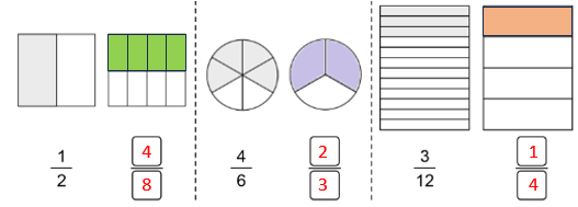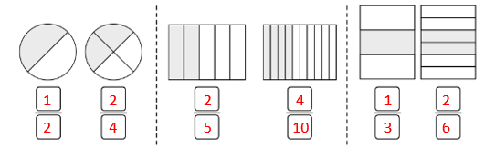 a) Quan sát hình vẽ, viết các cặp phân số bằng nhau