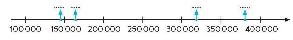 - Số 150 000 < 164 318 < 200 000 nên nên vị trí nằm trong khoảng từ 150 000 đến 200 000 là số 164 318.