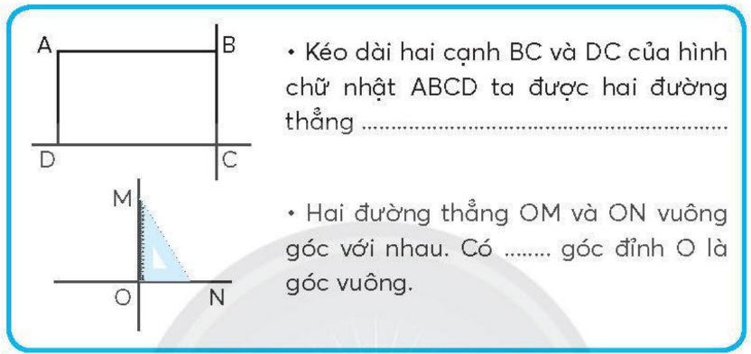 Dùng ê-ke để kiểm tra hai đường thẳng vuông góc rồi viết vào chỗ chấm.